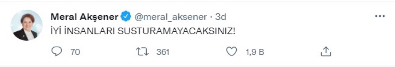İYİ Parti lideri Meral Akşener ise "İyi insanları susturamayacaksınız" sözleriyle tepkisini ortaya koydu.