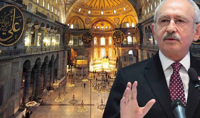 Ayasofya'nın cami olması tartışmasında konuşan CHP Genel Başkanı Kemal Kılıçdaroğlu "Erdoğan oturur, bir kararname yazar, resmi gazetede yazılır, ibadete açılır. 'CHP bana itiraz eder de ben de buradan oy devşiririm' diye düşünüyorsa, hayır bunu düşünmesin" ifadelerini kullandı.