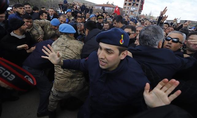 Henüz minübüste iken korumalar telsizden aldıkları bilgiyle bizden az önce gelen Mansur Yavaş’a tepki gösterildiğini söylediler. Bu bize çok daha fazla tepki gösterileceği demekti ama siyaset yapanlar olarak alışıktık bu tür protestolara. Ancak araçtan inince durumun farklı olduğunu anladık. Nerede ise kimsenin şehitle ve cenazesi ile ilgisi yoktu. Şimdiye kadar belki de yüz şehit cenazesine katılmıştım, bu farklıydı. İndiğimiz anda çevremizde adeta tribünde galeyana gelmiş seyirciler gibi bize yönelik anormal bir tezahürat vardı. “PKK’lilar”, “Ne işiniz var burada?”, “Bay Kemal”, “Siz şehidin katilisiniz”…