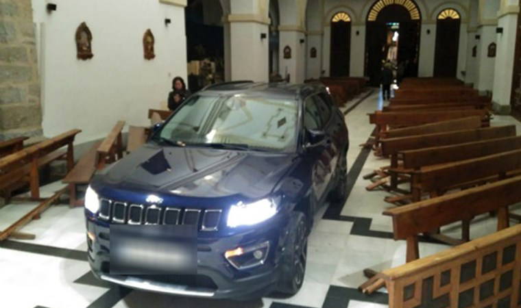 Olay, İspanya’nın Toledo kentinin güneyindeki Sonseca kasabasında bulunan St. San Juan Evangelista Kilisesi’nde meydana geldi. Bir sürücü, cipiyle kilisenin giriş kapısını kırarak içeriye daldı.
