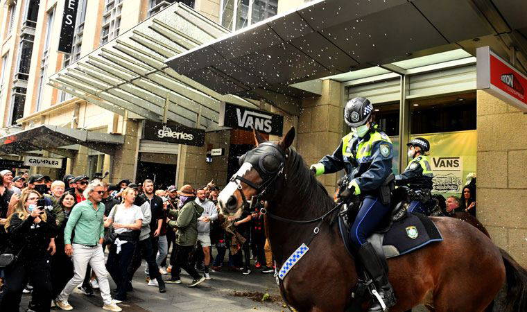 Yeni Güney Galler (NSW) polisinden yapılan açıklamada, ifade özgürlüğü ve barışçıl gösteri hakkının tanıdığını ancak protestonun halk sağlığı kurallarını ihlali ettiği kaydedildi.