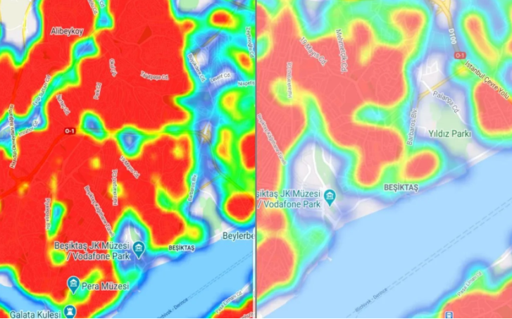 Koronavirüs salgınına karşı uygulanan sokağa çıkma kısıtlamalarının etkisi Sağlık Bakanlığı'nın HES uygulamasında yer alan İstanbul haritalarına yansıdı. Kısıtlamaların etkisi salgının yoğun yaşandığı ilçelerde bile yeşil bölgelerde artış olduğunu gösteriyor. Özellikle Kadıköy, Fatih, Beşiktaş, Şişli gibi ilçelerde yeşil alanlarda artış daha net görünüyor. Bağcılar, Esenler, Esenyurt gibi çalışan nüfusun daha yoğun olduğu ilçelerdeki düzelme ise çok daha sınırlı kalmış görünüyor. Bu durum akıllara sağlık ve emek örgütleri tarafından yapılan 'tam kapanma' çağrılarının yaşama geçirilmesi durumunda nasıl bir tablonun ortaya çıkacağı sorusunu getiriyor.