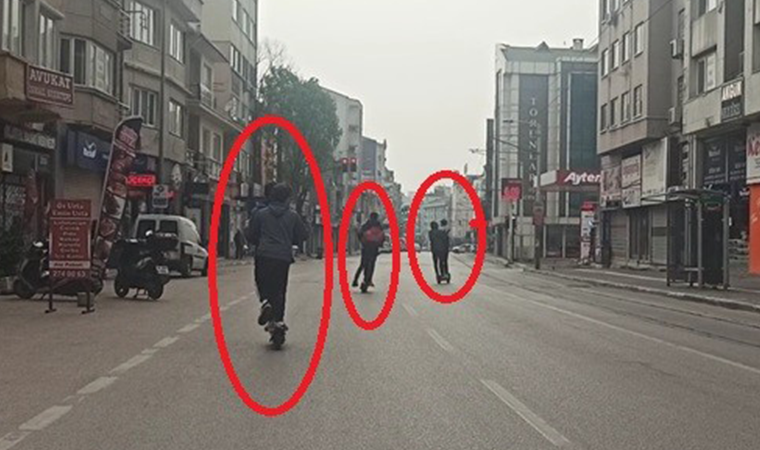 Şehir merkezinde bir grup genç, dijital ortamda kiraladıkları scooterlar ile yasağı delerek, boş kalan yollarda şehir turu yaptı. Gençler, kendilerini görüntüleyen basın mensuplarına, "Bize kısıtlama yok ağabey, polis bizi yakalayana kadar kaçarız. Trafik boş, böyle daha keyifli, ayrıca trafik kurallarına da uyuyoruz" dedi.