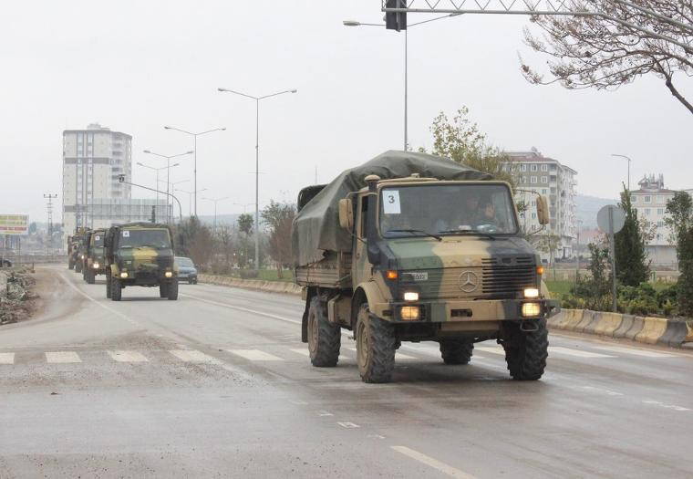 Suriye’de görev yapmak için doğu ve batı illerinden yola çıkan uzman çavuş, subay ve astsubaylardan oluşan komando birlikleri, yanındaki mühimmat ve askeri araçlarla birlikte Kilis’ten geçerek Gaziantep istikametine gitti.