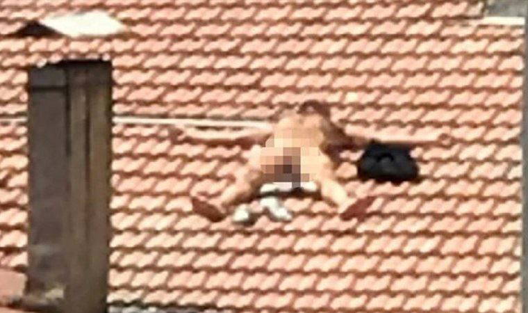 Yapılan araştırmada güneş yağı sürerek çatıda çıplak güneşlenen kişinin H.A. (51) olduğu belirlendi.