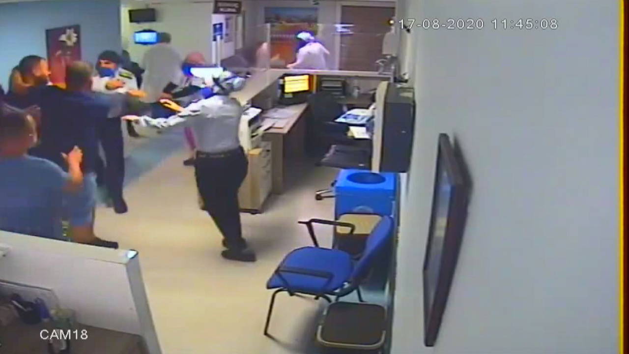 Bunun üzerine E.Y., hastaneden ayrıldı. Eşinin tedavisinin tamamlanmasının ardından, yaklaşık 2 saat sonra hastaneye dönen E.Y. ve yanındaki kalabalık grup, ellerindeki metal sopalarla görevlilere saldırmaya başladı.