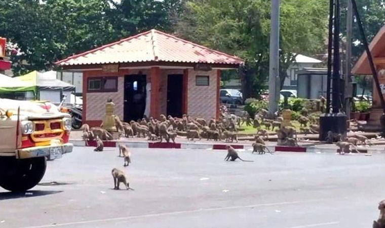 Tayland'ın turistik kentlerinden Lopburi'de yiyecek sıkıntısı çeken maymunlar kent merkezini istila etti. Yerel otoriteler buna sebep olarak koronavirüs salgını sonrası turist sayılarında gözlemlenen ciddi düşüşü gösteriyor. Maymunlar normal zamanlarda kente gelen turistler tarafından besleniyor.