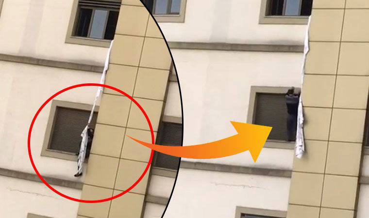 Pencereden çarşafları birbirine bağlayan hasta, zemine inip, kaçmayı palanladı. Bağladığı çarşafları camdan sarkıtıp, tutunarak inmeye çalışan hasta, büyük hayal kırıklığı yaşadı. Çarşafların boyu zemine kadar ulaşmayınca şüpheli, 1'inci kat hizasında mahsur kaldı. Bir kişinin havada asılı olduğunu fark eden vatandaşlar, hastane yönetimine bilgi verdi. Harekete geçen güvenlik ekipleri, hastanenin arka bahçesinden kaçmaya çalışan kişiyi, bulunduğu yerden kurtardı.