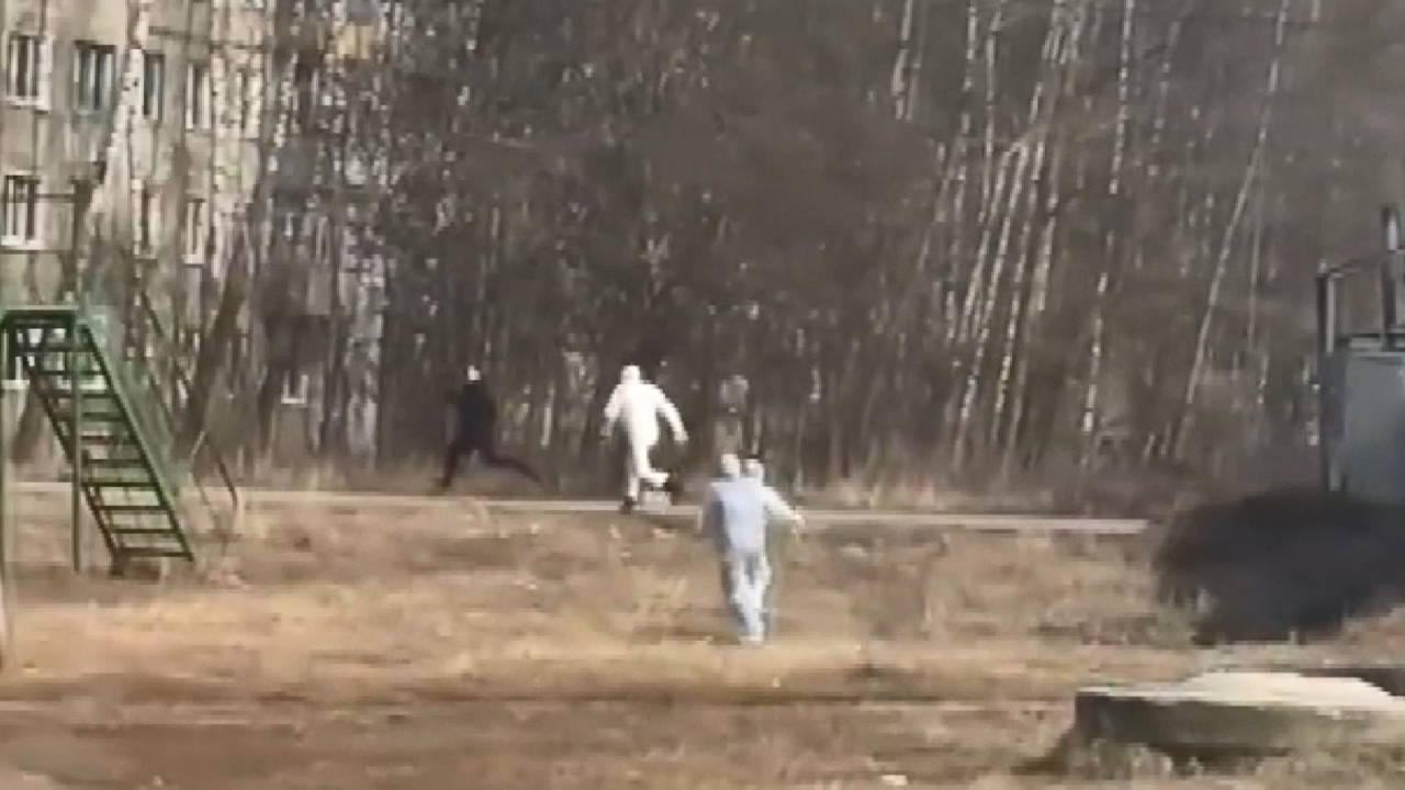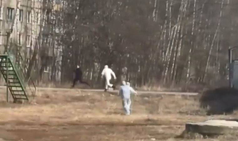 Hastaneye gitmek istemeyen kişi, koşarak sağlık görevlilerinden kaçmaya çalıştı. Amatör kameralarca kaydedilen görüntülerde, özel kıyafetli sağlık ekiplerinin hastayı kovaladığı görüldü.