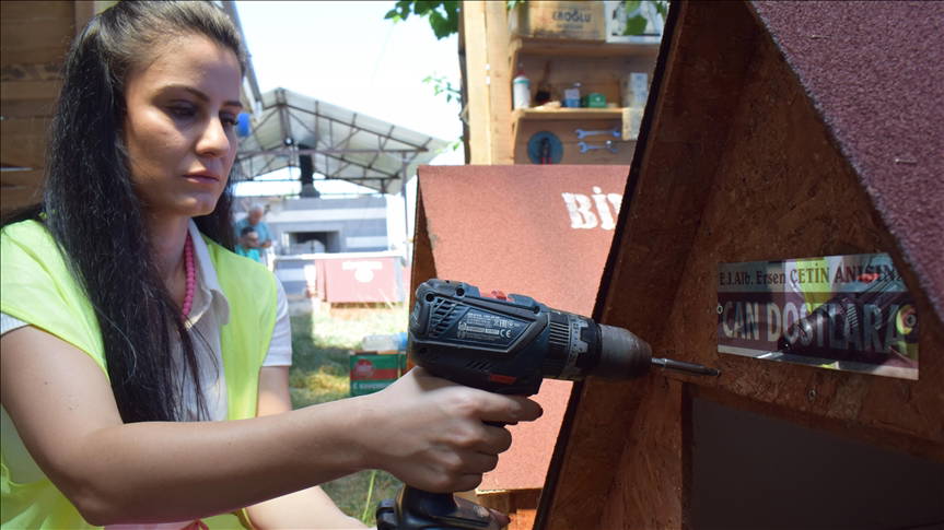 Düzce'de yaşayan Ümmühan Kirtay Çetin, 8 ay önce yeni tip koronavirüs (Covid-19) nedeniyle kaybettiği eşinin en büyük arzusunu yerine getirmek için sokak köpekleri için kulübe yaptırdı.