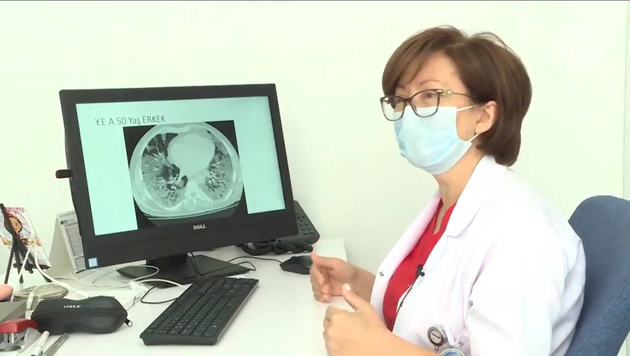 Prof. Dr. Karalezli, koronavirüs tedavisi gören hastalara ait akciğer görüntülerinden hastalığın yol açtığı tahribatı ve hastalar üzerindeki etkileri anlattı.