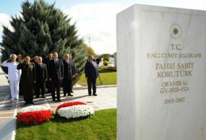 Korutürk'ün kabrine Cumhurbaşkanlığı, Genelkurmay Başkanlığı ve ailesi adına çelenkler konuldu, saygı duruşunda bulunuldu.