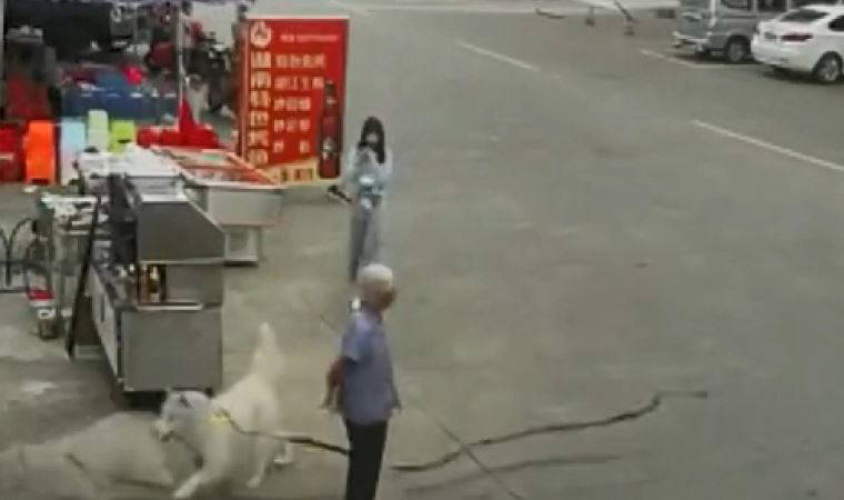 Bu sırada köpeğin tasması, yanından geçtiği yaşlı kadının ayağına takıldı.