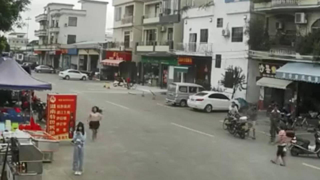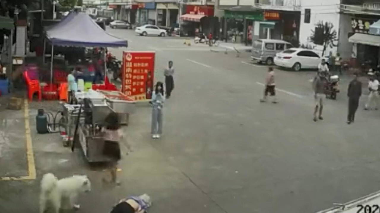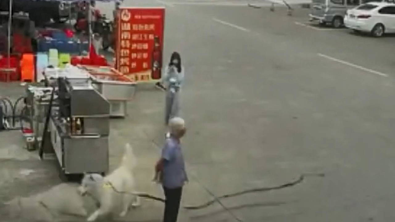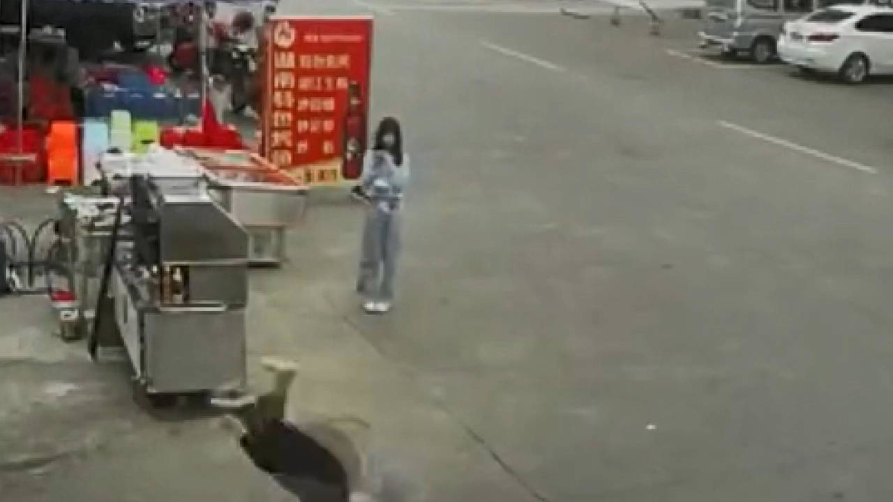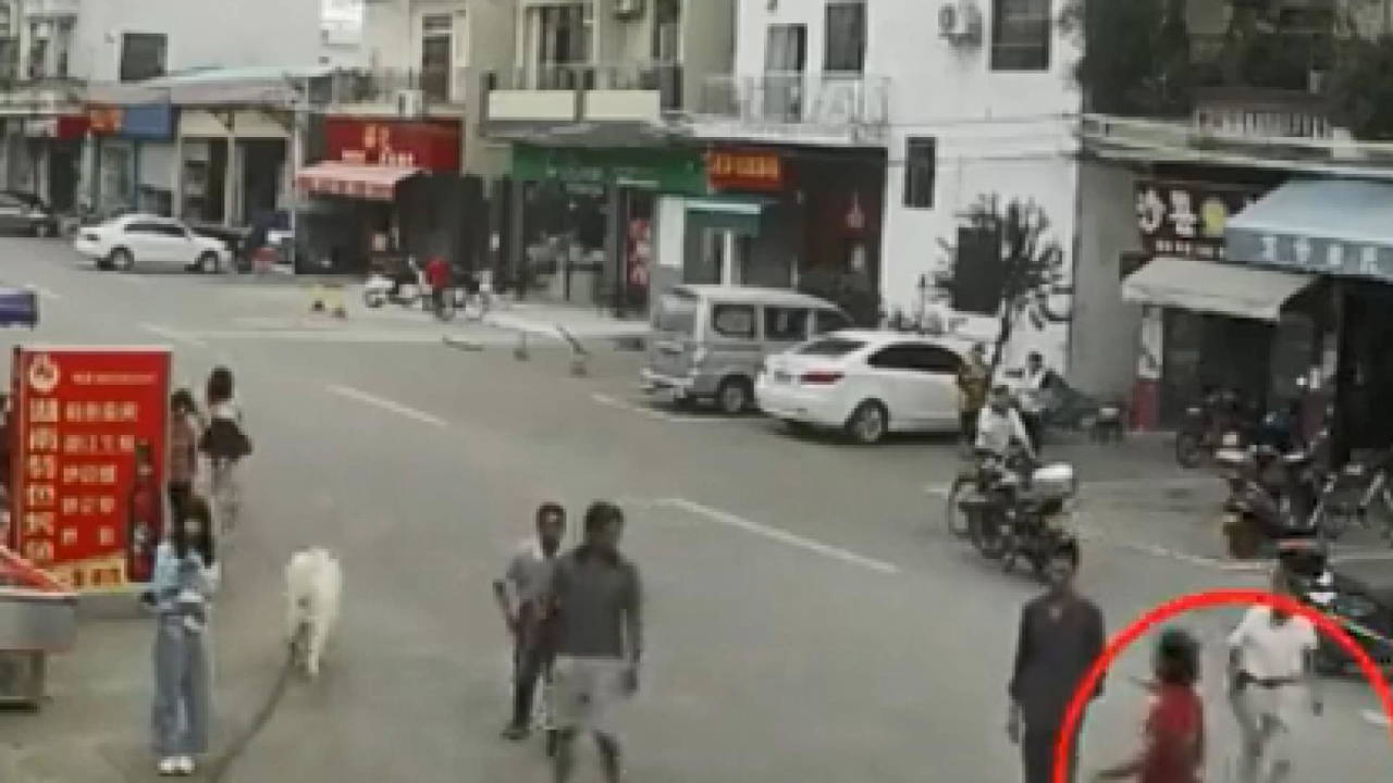 Çin'in Xingtan şehrinde kız çocuğu, caddede gezdirdiği köpeğinin tasmasını bıraktı.