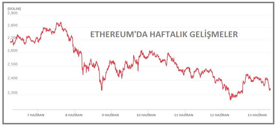 Kripto para piyasalarının ikinci büyük birimi Ethereum ise, 2,278.17 ve 2,447.23 dolar arasında dalgalandığı son 24 saatte yüzde 1.75 artışla 2,337.39 dolara yükseldi. Birimin haftalık kaybı yüzde 12.84 ve piyasa hacmi de yaklaşık 4.0 milyar dolarlık artışla 271 milyar dolar düzeyindeydi.