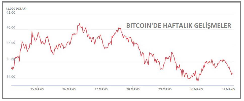 Son 24 saat içinde 34,333.17 ve 36,400.67 dolar arasında dalgalanan Bitcoin, yüzde 0.20 düşüşle 34.607.87 dolara gerilerken, birimin haftalık kaybı yüzde 2.07 olarak hesaplandı. Bitcoin'in toplam piyasa hacmi de 645 milyar dolara kadar geriledi.