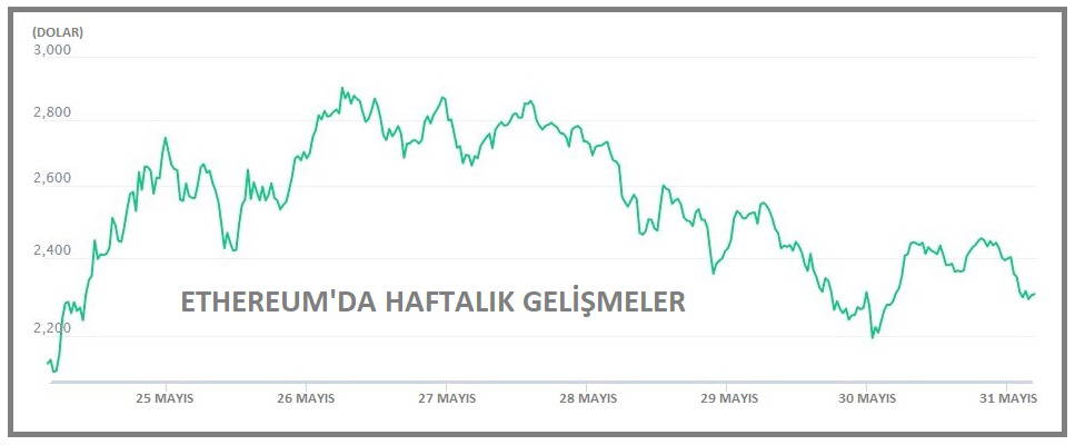 Kripto para piyasalarının ikinci büyük birimi Ethereum ise, 2,280.19 ve 2,472.19 dolar arasında dalgalandığı son 24 saatte yüzde 1.16 artışla 2,312.10 dolara yükseldi. Birimin haftalık kazancı yüzde 7.61 ve piyasa hacmi 267 milyar dolar düzeyindeydi.
