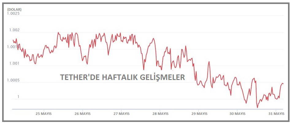 Kripto para piyasalarının üçüncü büyük birimi Tether de 1.00 dolar dolayında dalgalandığı son 24 saatte yüzde 0.04 yükseldi. Birimin haftalık kaybı ise yüzde 0.14 ve piyasa hacmi de 61 milyar dolar düzeyindeydi.