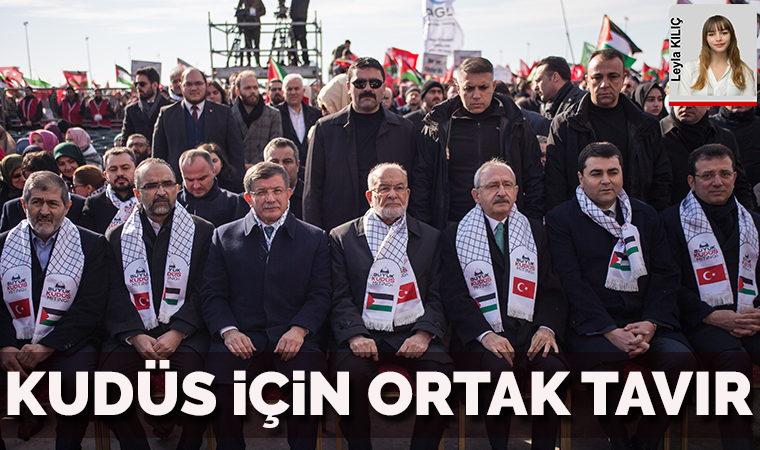Kılıçdaroğlu da “1092’de Haçlıların Kudüs’ü işgal ettiğinde yaptıkları ile bugün yapılmak istenen aynıdır. Kudüs’ün ortasına bir bomba konmuştur. O bombanın etkisini gidermek hepimizin görevidir. Emperyalistlere karşı bütün mazlum milletler birleşmeli. 1970’li yıllarda Türkiye’nin ahlakını ve vicdanını temsil eden gençlerimiz Filistin davasının neferleri oldular” dedi. Davutoğlu da Filistin için “İstanbul yanınızdadır, yanınızda kalacaktır” diye konuştu.