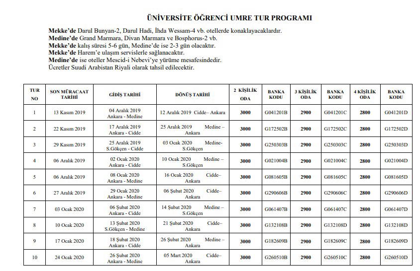 Fakültenin sitesinden ilan edilen duyuruda, öğrencilere yönelik “Umre Turu”nun ayrıntıları ve ücretleri yer aldı.
