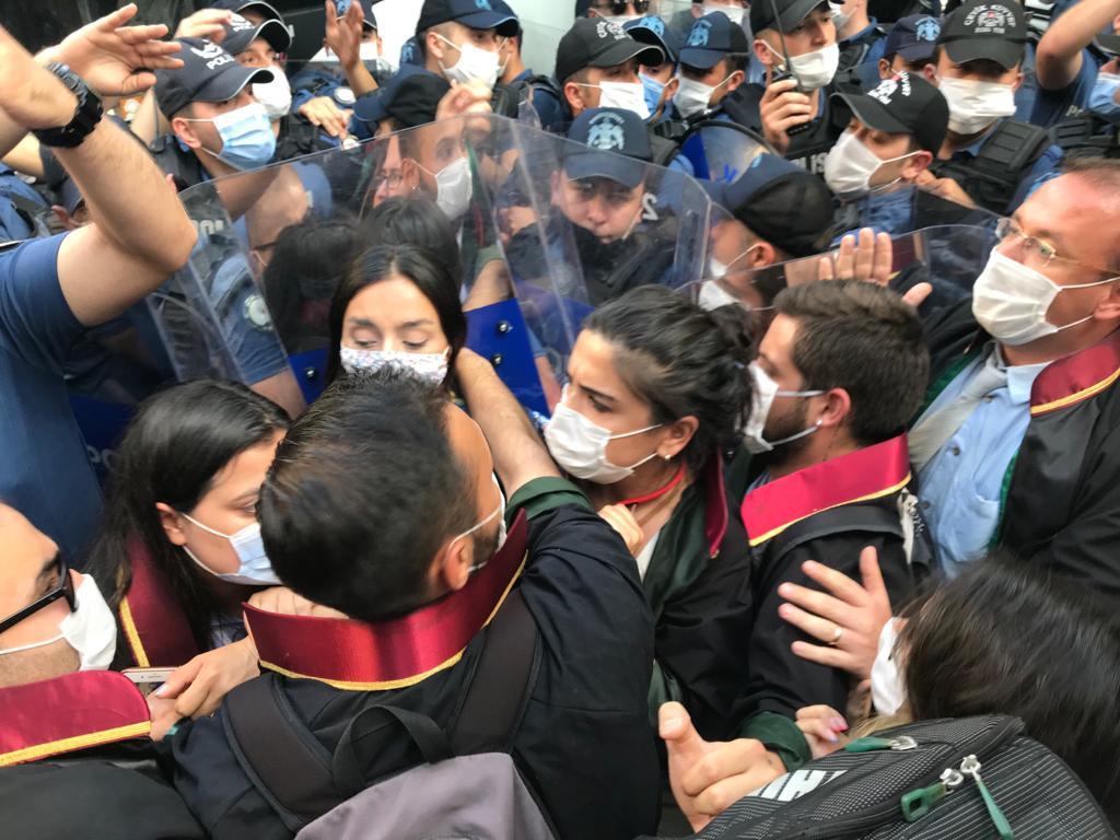 Polis, avukatların adliyenin ana kapıya yürümesine izin vermedi. Avukatları arka kapıya (C kapısı) yönlendirdi. C kapısının önünde uzun süren beklemenin ardından, baro başkanları ortak açıklama yaptı. Açıklamada, avukatların evlerine gitmesi istenerek, baro başkanlarının nöbete devam edeceği söylendi.