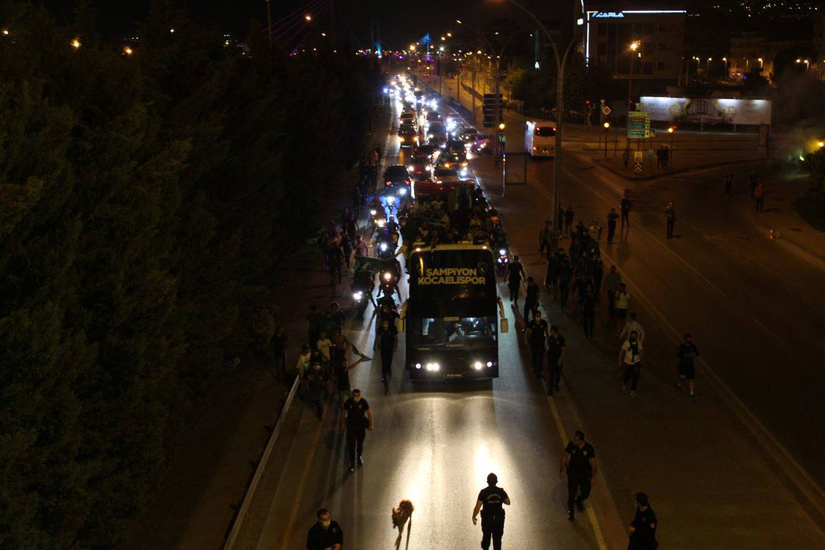 Kocaelispor kafilesi, taraftarlarla marşlar söyleyerek TFF 1. Lig'e çıkmanın coşkusunu paylaştı.