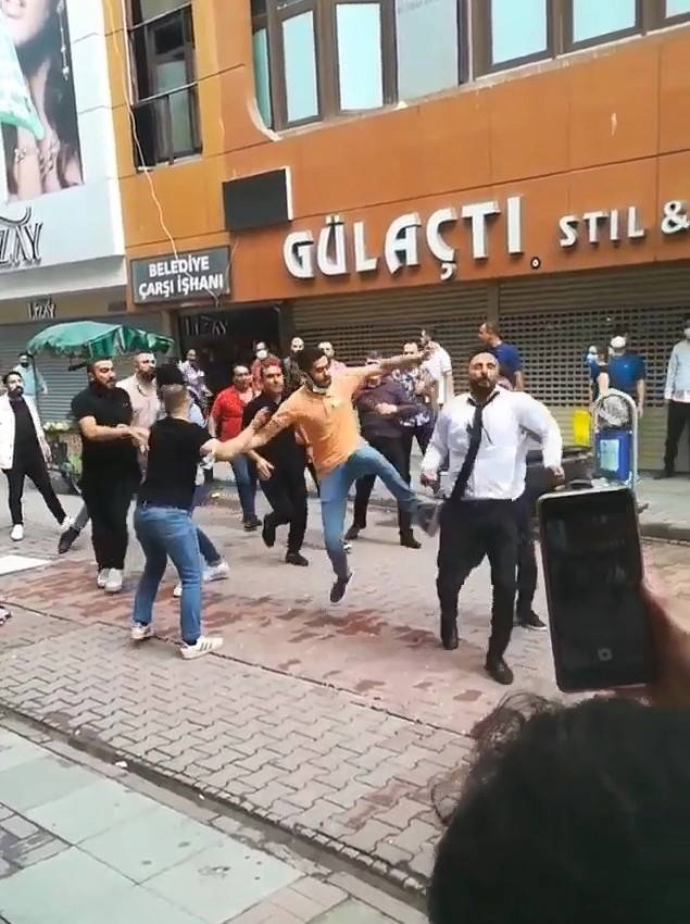 Kuyumcular arasında altın sebebi ile çıkan tartışma kavgaya dönüştü. Kuyumcuların yakınlarının da gelmesi ile iki grup cadde ortasında birbirine girdi.