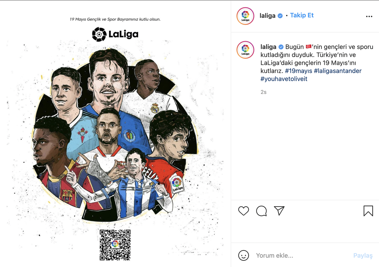 La Liga, Türk oyuncuların videolu mesajlarını sosyal medya hesaplarından, "19 Mayıs'ın kutlu olsun Türkiye!" başlığıyla paylaştı.