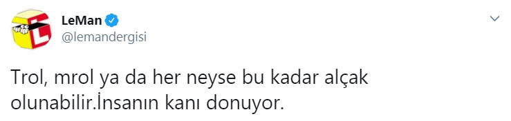 Leman Dergisi, saldırganı “Trol, mrol ya da her neyse bu kadar alçak olunabilir.İnsanın kanı donuyor” mesajıyla ifşa etti.