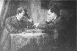 Lenin ile Hitler’in, Viyana’da tanınmış bir Yahudi ailenin evinde satranç oynadıkları, resmin de burada yapıldığı iddia ediliyor. Buna karşılık kimi uzmanlar böyle bir karşılaşmanın gerçek olamayacağını ileri sürerken, kimi tarihçiler de resmin ancak “hayal ürünü” olabileceğini, 1909’da Lenin’in Fransa’da olduğunu, o sıralar Viyana’da bulunduğuna ilişkin en küçük bir kanıt olmadığını vurguluyor.