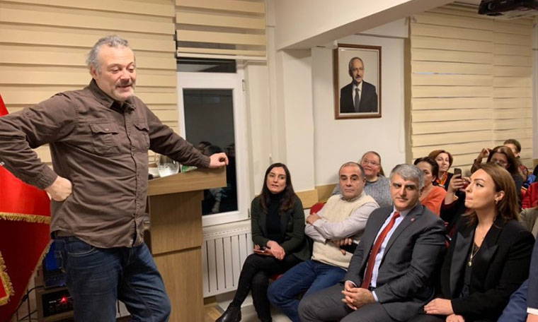 Batı'dan artık Türkiye'nin çok farklı görüldüğünü bunun da büyük bir tehlike olduğunu söyleyen Üzümcü sohbeti şöyle tamamladı: "Avrupa'dan Arap ülkesi gibi görüyoruz, Amerikalılar Asya ve Ortadoğu olarak bizi niteliyor. İşin kötüsü bu makas gün geçtikçe açılıyor. Tarih boyunca toplumlar sanatla, tiyatroyla, kültürle var olacaktır, tiyatrolarımıza sahip çıkalım..." Kadıköy CHP İlçe Başkanı Ali Narin, sohbete katılan Levent Üzümcü'ye teşekkür ederken, "Toplumlar sanatla var olmuştur, sanata getirilen her türlü yasağa karşıyız" dedi. Sohbeti izleyenler Üzümcü ile fotoğraf çektirmekten geri kalmadı.