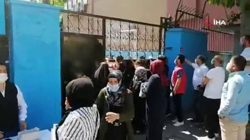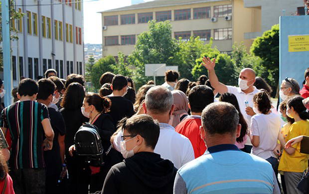 Ancak sosyal mesafe kuralı okul önlerinde bekleyen veliler arasında kaybolduğu görüldü. Birçok sınav noktasında uzun kuyruklar ve bekleyen kalabalıklar oluştu.