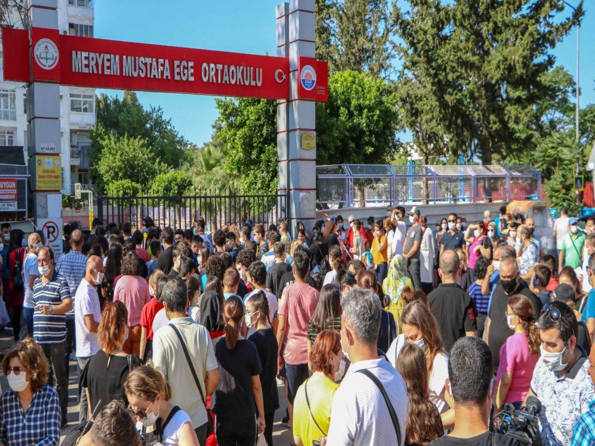 Liselere Geçiş Sistemi(LGS) kapsamındaki merkezi sınavın 09.30’da başlayan ilk oturumu tamamlandı. 45 dakika verilen mola sırasında öğrencilerin alınan önlemler kapsamında okul bahçesinden çıkışlarına izin verilmedi. Yapılan tüm uyarılara rağmen okul önünde bekleyişlerini sürdüren aileler, okul kapısı arkasından çocuklarına ulaşmaya çalıştı. Çocuklarıyla iletişim kurmaya çalışan veliler bu sırada sosyal mesafeyi hiçe saydı. Bazı veliler ile çevredeki görevliler sosyal mesafeyi ihlal edenleri sık sık uyardı.