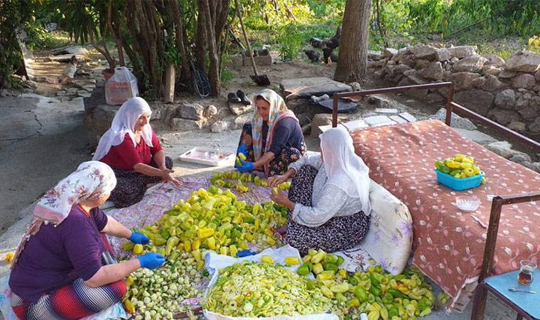 İstanbul’dan Diyarbakır’a dönen kadınlar, koronavirüs salgını nedeniyle bir süreliğine kooperatifi kapattı. Bu süreçte kadınlar, boş durmadı ve evlerinde turşu yapmaya devam etti. Virüs sonrası ise kepenklerin açılmasıyla beraber ev emekçisi kadınlar, tek kullanımlık önlükler ve sedye çarşafları dikmeye başladı.