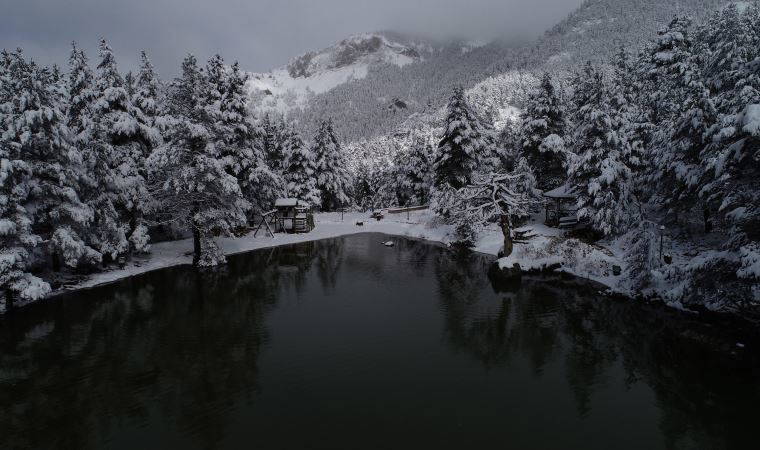 Kar kalınlığının 10 santimetreyi aştığı 1700 rakımlı bölgede, sarıçam ve ladin ağaçlarının yanı sıra göl çevresinin beyaz örtüyle kaplanması, seyri doyumsuz görüntüler oluşturdu.