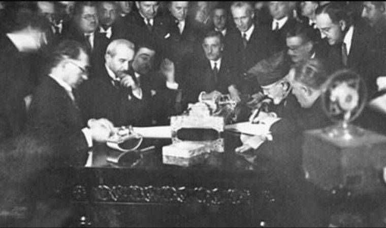 İlk imza İsmet Paşa tarafından ve Atatürk’ün verdiği altın bir dolmakalemle atılmıştır.