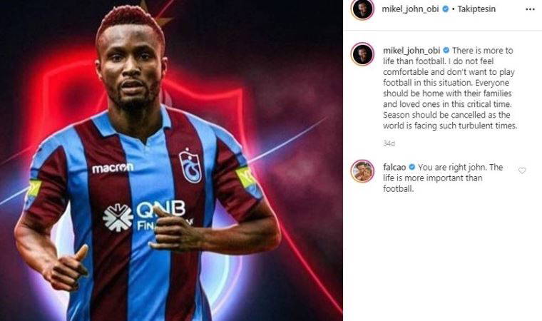 Mikel, koronavirüs olayları sonrası “Oynamak istemiyorum, ligler oynanmasın. Hayatta futboldan daha önemli şeyler var. Kendimi iyi hissetmiyorum ve bu durumda futbol oynamak istemiyorum. Sezon iptal edilmeli” demişti.