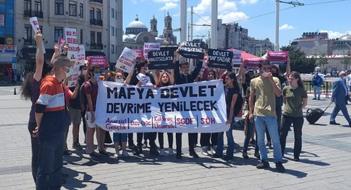 İstanbul Taksim’de, bir araya gelen gençlik örgütleri, organize suç lideri Sedat Peker’in siyasetçi ve bürokratlara yönelik iddialarıyla ilgili harekete geçilmemesini protesto etti.