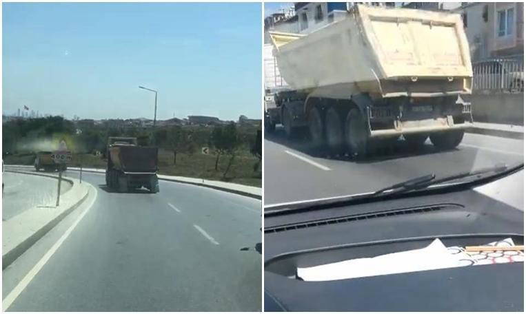 Sosyal medya üzerinde yayınlanan ilk görüntüde yolda makas atarak, slalom yaparak ilerleyen bir hafriyat kamyonunun sürücüsü, dakikalarca şerit değiştirerek trafiği tehlikeye düşürmüştü. Aynı bölgede çekilen başka bir görüntüde ise başka bir hafriyat kamyonu kasasındakileri dökerek ilerlemişti.