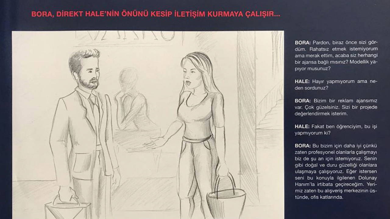 Romanda, 70 kadar mağdur kızın anlatımları doğrultusunda ‘Hale’ adlı hayali karakter yaratıldı. Buna göre üniversiteli Hale, İstanbul’da ünlü bir AVM’de gezerken, Oktar’ın ‘kız bulma imamı’ diye suçlanan B.Y. tarafından hedef seçiliyor. Kendisini ajans sahibi olarak tanıtan B.Y., Hale’ye lüks markaların sosyal medyadaki reklam yüzü olmayı öneriyor. Hale, kabul ediyor. B.Y., Hale’yi evine bırakıyor. Bu sırada pahalı arabasını, korumalarını, tabancasını ve torpido gözündeki parasını göstererek, genç kızı etkiliyor. İşleri yüzünden evlenemediğini, Hale’den hoşlandığını söylüyor.