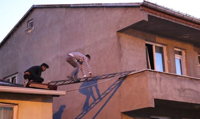 Edinilen bilgiye göre olay, akşam saatlerinde Ali Baba Mahallesinde meydana geldi. 3 katlı bir apartmanın en üst katında bulunan boş bir evin balkonunda yaklaşık 4 gündür mahsur kaldığı düşünülen kediyi fark eden vatandaşlar durumu polise bildirdi. Olay yerine gelen polis ekipleri ev sahibine ulaşmaya çalıştı fakat ev sahibinin İstanbul'da olduğu öğrenildi. Ekipler kendi çabalarıyla kediyi kurtarmak istedi. Yan apartmanın çatısından kedinin mahsur kaldığı balkona tahta konuldu. Fakat yine de fayda etmedi. Daha sonra durumu fark eden hayvansever bir genç kedinin mahsur kaldığı apartmanın bitişiğinde bulunan apartmanın çatısından balkona merdiven dayadı. Yaklaşık 10 metrelik bir yükseklikten canını hiçe sayarak geçen hayvansever genç dayadığı merdivenden balkona girerek kediyi kurtardı.