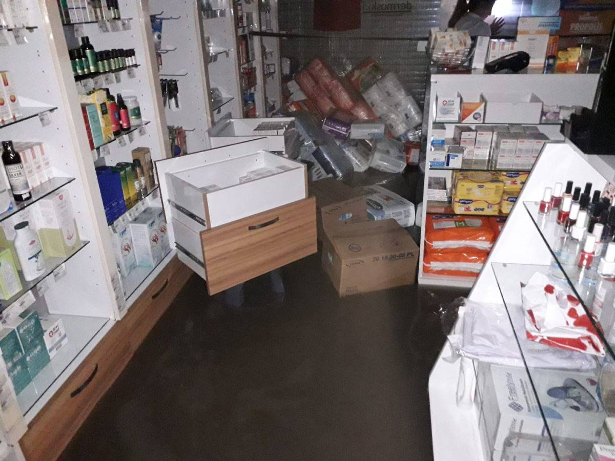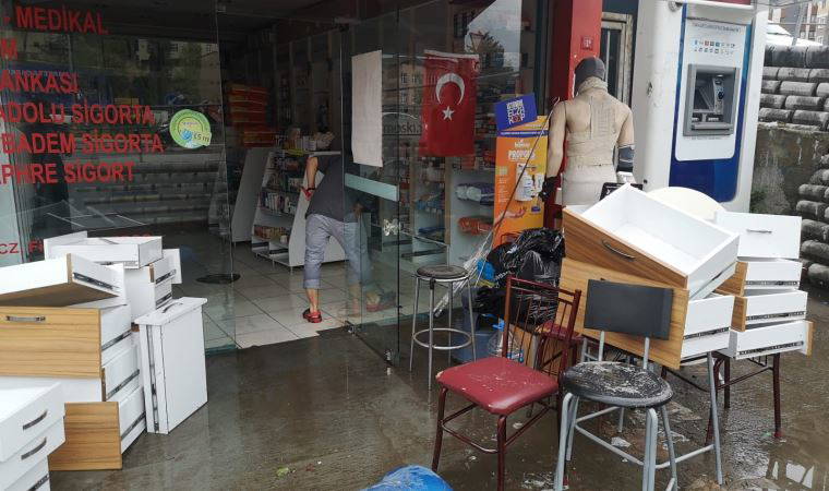 Su baskınında dükkanı zarar gören Eczacı Filiz Aykut Ersoy, “Yoğun yağış sonrası dükkanımızı kepenk ve kapıları kapatmış olmamıza rağmen su bastı. Burası 10 santime kadar su doldu. Şu an eczane içerisindeki tüm ilaçlar kullanılamaz hale gelmiş durumda” diye konuştu.