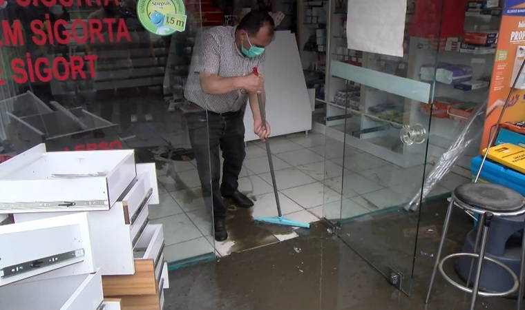 Su baskını sonrası iş yerlerinde personeller temizlik çalışması yaptı. Su baskını nedeniyle zarar gören yüzlerce ürün ise kullanılamaz hale geldi.