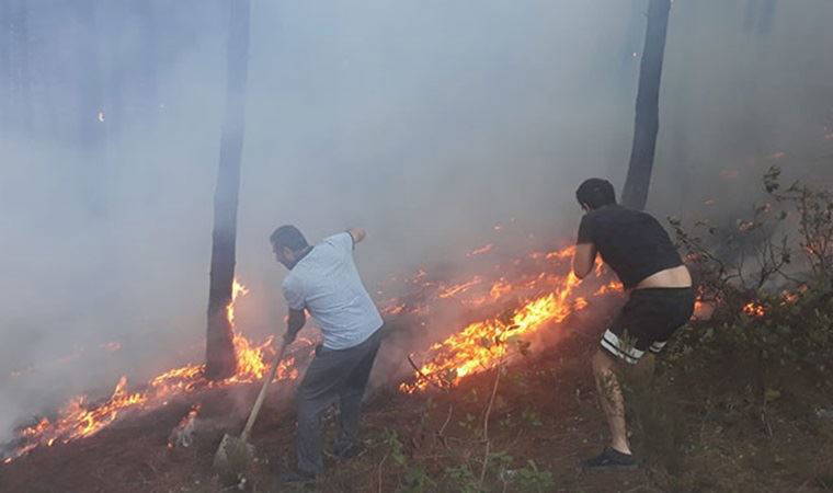 Yangını söndürmek için ekiplere vatandaşlar da yardım ediyor.