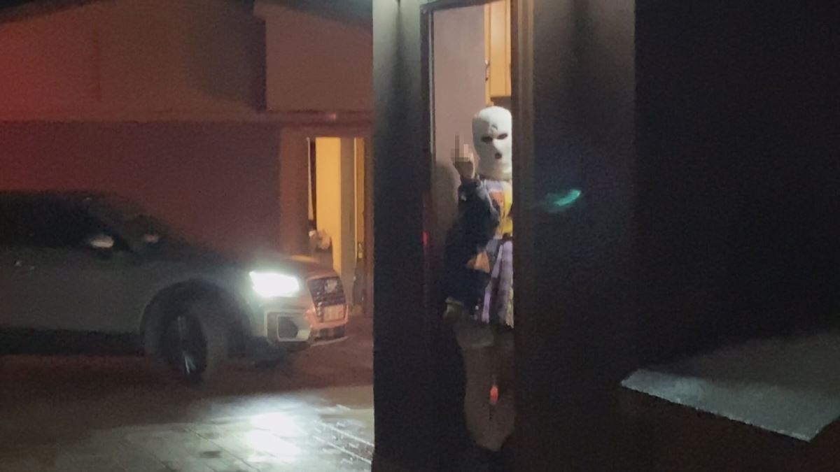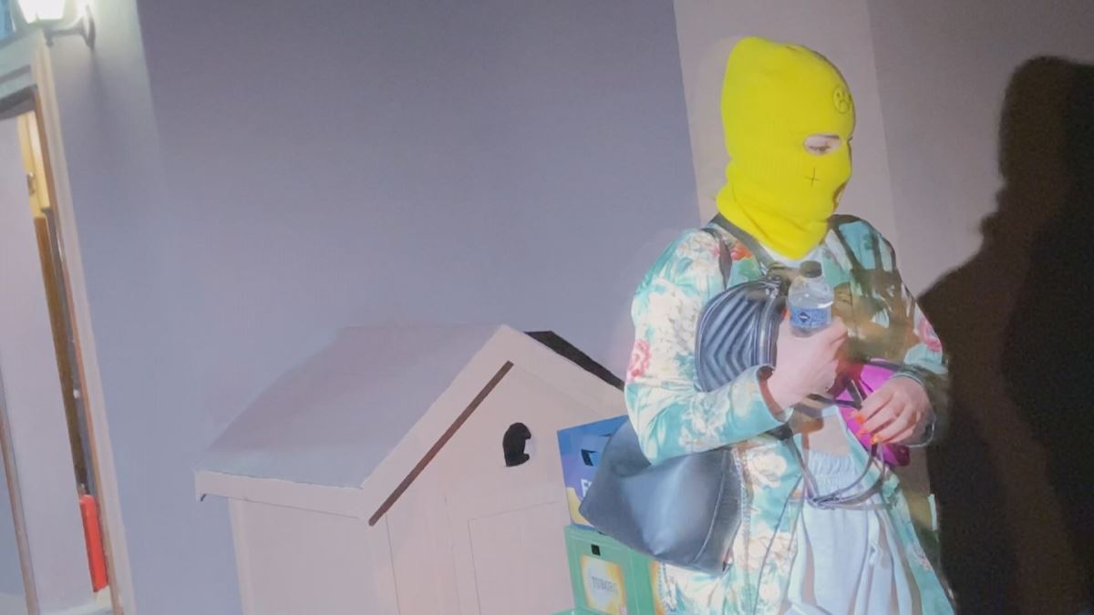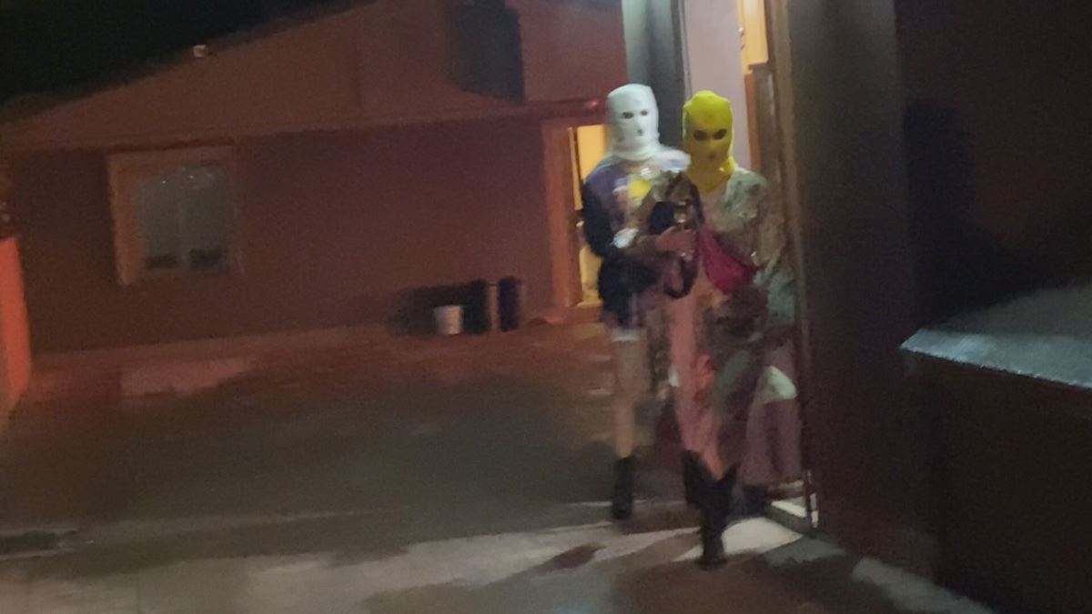 Villadan ayrılmaya çalışan bir kadın görüntülendiğini anlayınca koşarak kaçtı. Yüzüne kar maskesi takan bir diğer kadın ise kameralara el hareketi yaptı.