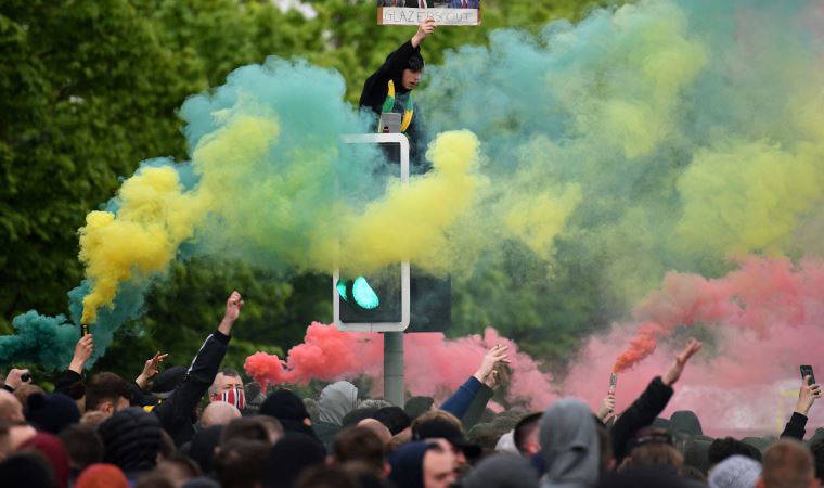 Bugün oynanacak karşılaşma öncesinde de Old Trafford önünde toplanan taraftarlar takımın takımın sahibi Glazer ailesini Avrupa Süper Lig projesine katıldıkları için protesto etti.
