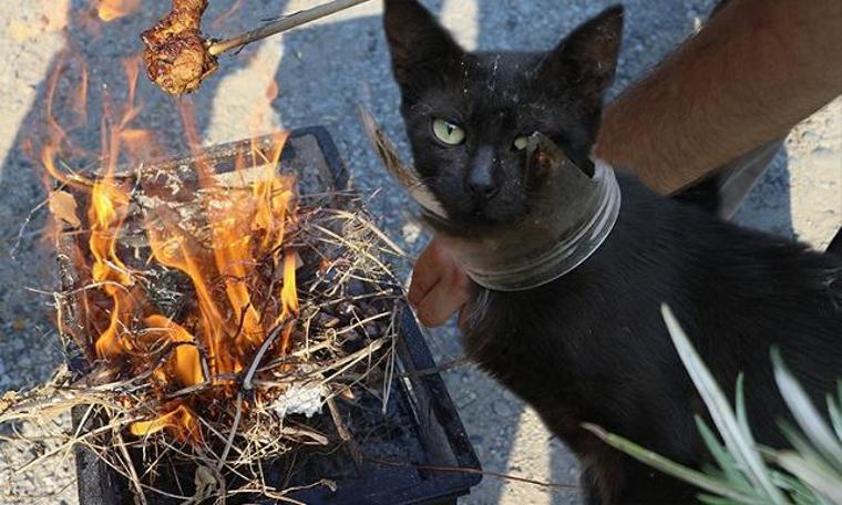 Mahalleli kediyi yakalamak için mangal yaktı