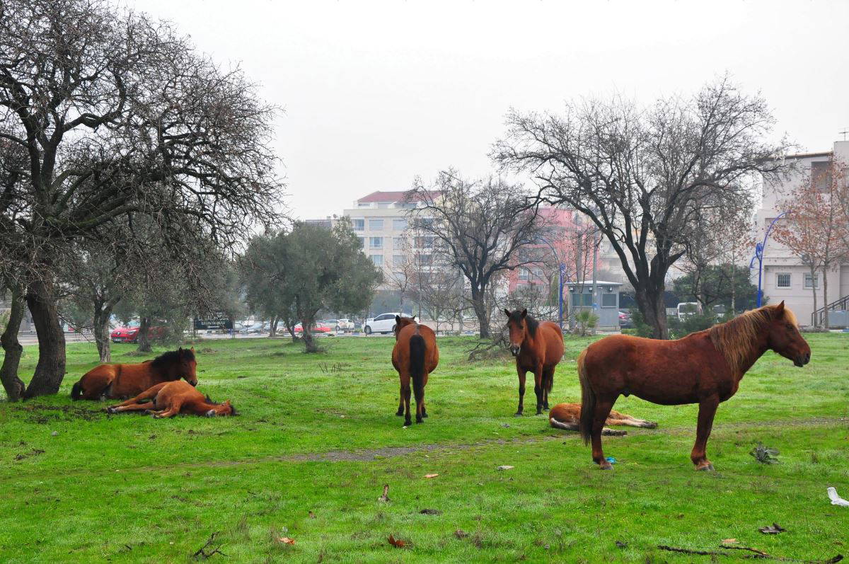 Manisa'nın 1517 metre yüksekliğindeki Spil Dağı Milli Parkı'nda yaban hayatı süren yılkı atları, sert geçen kış şartlarında ot bulmakta zorlandıkları ve aç kaldıkları için şehir merkezinde görülmeye başlandı.