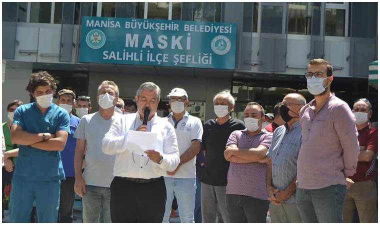 Salihli'de MASKİ şubesi önünde yapılan eyleme Salihli CHP İlçe Başkanı Hasan Hüseyin Namver, partililer ve çevre halkı katıldı. Basın açıklamasını okuyan Namver, Manisa genelinde su faturaları üzerinden yapılan soyguna dur demek için bir araya geldiklerini belirterek, "Pandemi süreci ile birlikte yaşanan hastalığa, işsizliğe, geçim sıkıntısına bir de Manisa Büyükşehir Belediyesi'nin yapmış olduğu su zamları eklendi. Manisa halkı şu anda Türkiye'nin en pahalı ikinci suyunu kullanmaktadır. Parasını kendimizin yatırdığı, suyu kendimizin yüklediği kartlı sayaç sisteminde sayacımızın nerede olduğunu dahi bilmeyen MASKİ yönetimi sayaç bakım bedeli altında faturaları kabartmaya devam ediyor" dedi.
