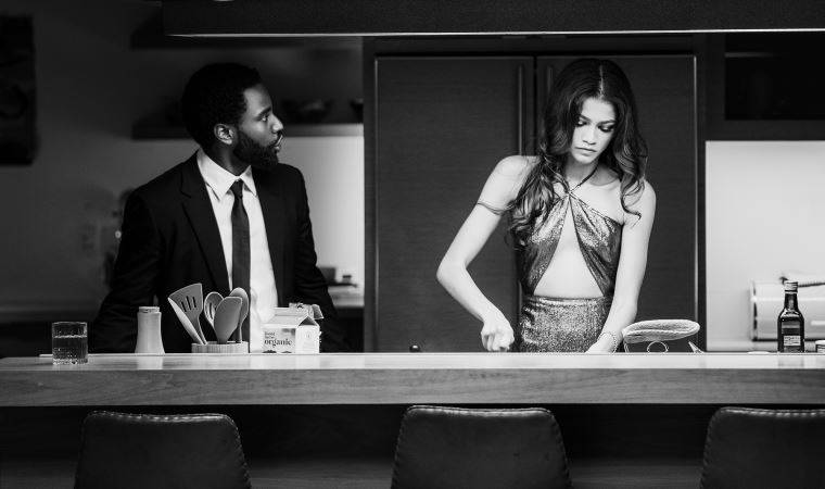 Klasik Hollywood filmlerini hatırlatan bir jenerikle açılan film, siyah beyaz renkte ve gösterişsiz bir sanat yönetimiyle karşımıza çıkıyor zira yönetmenin odaklanmamızı istediği tek şey, Malcolm ve Marie ile ilişkilerinin ardındaki giz… Nitekim çiftin eve girişinden hemen sonra karakterlerine ve içinde bulundukları duygusal atmosfere evin dışından bakmamızı isteyen yönetmen, nihayet buzdağının altındakilerle tanıştırmaya karar verdiğinde karakterlerinin yüzlerine odaklanıyor. İlk kez, Marie’nin peynirli makarna (mac’n cheese) yaptığı anda yüz planını tercih eden yönetmen, filminin peynirli makarnanın üzerine yansıttığı ismiyle de ikilinin, metaforik bir dille “ayrılmazlığını” açık ediyor. Gerçekten de film, kısa bir süre sonra başlayan ve geceyi bir boks maçına dönüştüren, her iki karakterin de yoruldukça dinlenip, güç kazandıkça saldırdığı bir arena halini alıyor.